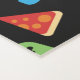 Kinderpersonalisierte Videospieltech-Party-Imbiss-Yoga-Matte. Muster mit Videospielprüfern, Kopfhörern, Schaumgummiringen, Eiscreme, Pizza, Burgern und Fischrogen auf einem schwarzen Hintergrund. Personifizieren Sie mit Namen und Initiale. Spaß Gamer und Nachtischmuster. www.SamAnnDesigns.com