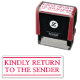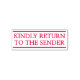 Dieses minimalistische Design aus Gummi-Briefmarke beinhaltet die Meldung "KINDERT AUF DEN SENDER ZURÜCK". Es kann verwendet werden, um anzugeben, dass die empfangene Briefpost an die falsche Adresse oder an einen unbekannten Empfänger übergeben wurde, und sollte an den Absender zurückgesandt werden.