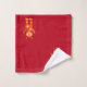 Kinderorange Rot-Roboter-personalisiertes Spaß-Badezimmer-Tuch-Set. Washcloth, Handtuch und Körperalle Tuch haben dunkelrote Hintergründe mit den verrückten Robotern der Leuchtorange, die heraus von den Ecken emporragen. Personifizieren Sie mit Namen auf dem Körpertuch. Themed Roboterentwurf der Science Fiction für Kinder. www.SamAnnDesigns.com