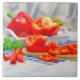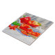 Frische Paprikaschoten auf einem Schneidbrett.