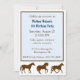 Kindergeburtstagsfeier mit Grafik von braunen Pferden Silhouetten, unten und einem Boxed in blauem Textbereich. Personalisieren Sie den blauen und braunen Text, um Ihren Party zu Anzug. Gute Party Einladungen für Mädchen oder Jungen.