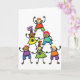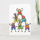 Ein wirklich cooles Design von vielen Kindern, die eine Pyramide gebildet haben. Diese Kinder werden gezeichnet und sie tragen alle verschiedene farbige Tops. Diese Kinder sehen sehr hell, bunt und fröhlich aus. Diese Kinderpyramide sieht auf diesen Grußkarten großartig aus