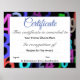 Lehrerschulzertifikat oder Schulprämie für Schulkinder. Personalisieren Sie dieses Zertifikat, um es mit Namen, Prämientitel, Datum usw. zu einem besonderen Erlebnis zu machen. Fügen Sie den Namen Ihrer Schule oder Einrichtung hinzu. Farbiger Hintergrund von gerühmten Zahlen.