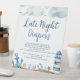 Babyduschecke für Späte mit spätabendlicher Spätnähe mit einem Wasserthema mit Meer, Muscheln, Booten und Kunsthandwerk aus Leuchtturm