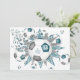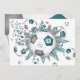 Die niedliche Fußball-Party Einladung mit einem aquamarinen und grauen Motiv zeigt eine "Explosion" von Fußballbällen unterschiedlicher Größe und Sternformen auf der Vorderseite und einen abstrakt übergroßen Fußball auf der Rückseite - die typisch schwarzen Fußbälle wurden aquamarin und grau neu gefärbt - passen sich mit den Fußball-Party vorne und hinten an - von katz_d_zynes