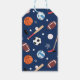 Kindersportgeräte-Muster auf blau Geschenkanhänger