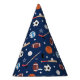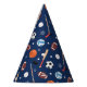 Kindersportgeräte-Muster auf Blue Birthday Partyhütchen
