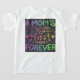 Dieses T - Shirt-Design feiert den anhaltenden Power der Liebe einer Mutter. Die Meldung "Die Liebe einer Mama, zuerst dann für immer" wird in einem lebendigen mehrfarbigen Schema angezeigt, wobei jedes Wort möglicherweise eine andere Farbe hat. Es gibt keine Bilder von Menschen auf dem Shirt, lassend den herzerwärmenden Text nehmen die zentrale Bühne.
