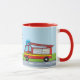 Tatü Tata! Diese fröhliche Kindertasse mit einem coolen Feuerwehrauto auf Einsatzfahrt, einem Baum, Sonne und Wolke am blauen Himmel macht jeden Schluck zum Abenteuer. Personalisiere sie mit dem Namen deines kleinen Helden für ein ganz besonderes Geschenk!