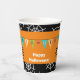 Diese Halloween-Party-Papiertassen für Kinder sind mit einer niedlichen, schwarzen Spinne ausgestattet, die vor einem hellorangen Hintergrund an seinem Netz hängt. Ein farbenfroher "Trick or Treat" Banner wird von zwei schwarzen Fledermäusen getragen. Eine schwarz-weiße Spinnennetze sorgt für spitziges Interesse. Ihr benutzerdefinierter Text ist in Weiß unter dem Banner. *Clip Art, die in diesem Design verwendet wird, ist urheberrechtlich geschützt durch Encore Software, Inc., die die Nutzung für ihre Lizenzgeber erlaubt. Alle Rechte vorbehalten.