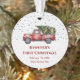 Suchen Sie den perfekten Sake, um das erste Weihnachtsfest Ihres Babys zu feiern? Diese maßgeschneiderte Einrichtung ist die Antwort. Capture this once in a life Meilenstein with our beautiful, two-side "Baby's First Christmas with Birth Stats Foto Ornament". Das ist nicht nur eine Dekoration; es ist eine wertvolle Erinnerung, die man Jahr für Jahr an seinem Baum festhalten kann. Auf der Seite 1 befindet sich ein Vintager, wasserfarbener Truck, der einen Weihnachtsbaum trägt, das Set vor einem festlichen, schneebedeckten Hintergrund. Personalisieren Sie diese Seite mit dem Namen und dem Geburtsdatum Ihres Babys, um es einzigartig zu machen. Die Seite 2 ist für das wertvollste Foto Ihrer Kleinen reserviert. Laden Sie einfach Ihr Lieblingsbild hoch, um diesen personalisierten Sake zu vervollständigen. Dieses Ornament ist die ideale Lösung für neue Eltern, die ein besonderes Mémento gewollt haben, oder für alle, die nach einem durchdachten und personalisierten Geschenk für eine Familie suchen, die die erste Urlaubssaison ihres Kindes feiert. Erstelle heute deinen einzigartigen Sake und erinnere dich an dieses besondere Jahr für immer.