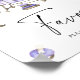 Die Einladung zeigt Aquarell, Babywickel, Kinderzimmer in Form lila Rundwolken, Kinderspielzeug: Nageelefant, Räderente, Teddybär, Hase, Bib, Schnuller, Pyramide.