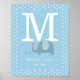 Niedliches erstes Monogramm-Kinderzimmer-Poster mit dem Namen Ihres Babys und dem Jahr, in dem sie ankamen, mit süßen Polka Dot Elterntieren und Babyelefanten. Ein schöner Schatz!