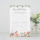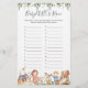 Kinderzimmer Rhymes themed Baby Dusche Die Rennspielkarte von ABC bietet eine Aquarell-Kinderzimmer-Rhymes-Illustration und Aquarell Grüne Eukalyptus-Garland und eleganten handgeschriebenen Stil Schriftart.