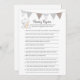 Ein lustiges Spiel für das Gender-Enthüllungs-Party ist das Kinderzimmer-Rhythmus-Spiel. Dieses Spiel enthält oben ein silbergraues und braunes Banner und einen Babyelefanten, der einen bräunlichen Hund umarmt. Auf der anderen Seite ist ein Babyelefant, der lächelt, während er seinen Kofferraum mit Vorlagen nach oben hebt.