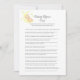 Dies ist eine Kinderzimmer Rhymes Quiz Baby Duschspielkarte. Niedlicher gelber Mond mit Sternen und einem Teddybär, der auf dem Mond auf weißem Hintergrund auf der Vorderseite sitzt, und gelber Hintergrund mit weißen Polka-Punkten auf der Rückseite.