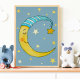 Kinderzimmer Wall Art Moon Stars Gelbes blaues Pos Poster