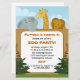 Diese entzückenden personalisierten Geburtstags-Party Einladungen sind für Kinder groß, die Liebezootiere. Jede Einladung kennzeichnet eine reizend Illustration eines Elefanten, des Löwes und der Giraffe, die über einen Zaun spähen. Die Einladungen sind bereit, für ein Party am Zoo zu personifizieren oder ein Zoo-themenorientiertes oder Safari-themenorientiertes Geburtstags-Party.