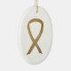 Das Ornament zeigt das Gemälde eines Goldbewusstseinsbändern. Das Goldbewusstsein-Band bedeutet Unterstützung für das Bewusstsein für Krebs bei Kindern oder Kindern. Die Goldbewusstsein Band-Kunst kann mit personalisierten Botschaften, um große verursachen Schmuck oder Anhänger für Fundraisers, Bewusstsein Weihnachten oder Feiertage Geschenke, oder andere besondere Veranstaltungen oder Anlässe.