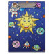 Dieses niedliche Klemmbrett ist großartig für Zuhause oder Schule, Lehrer, Krankenschwestern, Ärzte oder jedes Büro, in dem die Fantasie eines Kindes eine Rolle spielt. Die Weltraum-Themen-Bilder sind perfekt für jeden, der mit Kindern arbeitet. Dieses Klemmbrett wäre ein großartiges Geschenk für jeden im Schul- oder Medizinbereich.