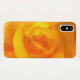 Eine in Vue entstandene 3D-Nahe einer feurgelben Rose mit ihren durchsichtigen Gold- und Orangenblättern, die in der warmen Sonne leuchten. Die sonnige Fröhlichkeit der gelben Rose symbolisiert oft Freundschaft und warme Zuneigung.
