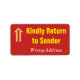 "Kindly Return to Sender", Label "Falsche Adresse" Adressaufkleber