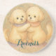 This is a soft illustration of two fluffy dogs sitting close together in blended, warm pastel colors denoting friendship and love.