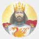 König Arthur mit seiner Krone und einem mit einem walisischen Drachen umrandeten Brustschild zeigt mit einem herausfordernden Ausdruck nach vorn. Der Hintergrund zeichnet sich durch ein strahlendes goldenes Licht aus, das die Grandeur des Charakters verstärkt. Dieses Bild stammt aus der Erweiterung der arthurischen Legenden aus dem Zaubererreich: Gegenteiligtes Reich.