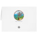 Landschafts- und Elchmalerei innerhalb eines Kreises-Rahmen. Dieser mächtige Elch hat Bäume als Geweihe angebaut. Er steht hoch und wacht über seinen Wald aus Hügeln und Gewässer. Artwork Copyright© 2017 Kimberly J Tilley.
