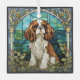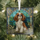 Glasschmuck für Weihnachten oder den Alltag mit einem König Charles Cavalier Spaniel Hund künstlerisch in einem Buntglasfenster-Modus getan.