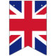 Patriotisches Rot, Weiß und Blau, um die Krönung von König Charles III von Großbritannien 2023 zu feiern. Die britische Gewerkschaft Flag, die "Union Jack" beim Fliegen genannt wird, ist mit Kronen und Line-Art-Portraits des Königs mit einem Lorbeerkranz verstreut.