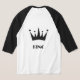 King Text oder Name oder Word mit Black Color Crown Image und The Style ist Basic 3/4 Sleeve Raglan T - Shirt. Farbe ist weiß/schwarz.