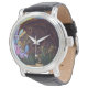 Uhr, Klassische Damenuhr mit schwarzen Lederarmband
