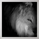 Der König der Katzen. Der Anführer des Stolzes. Die Schönheit der Tiere. Dieser intensive Löwe in Schwarz und Weiß. Fotografie von S.M.Lynch, 2013.