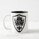 König Schädel mit Schwert und Flammen Set auf einem Schild.