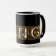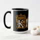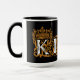 "Stilvolle Tasse aus schwarzer Keramik mit kühlem, weißem "KING"-Buchstaben, perfekt für eine königliche Touch Ihres Kaffees oder Tees."