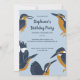 Diese Einladungen sind ideal, um eine Geburtstagsfeier oder eine andere besondere Veranstaltung zu veranstalten, um Ihren Lieblingsvogelliebhaber zu ehren. Diese laden zu Illustrationen von Königsfischen in marineblau, Senfgold und weißem Set vor einem hellblauen Hintergrund ein. Diese flachen Panel-Einladungen sind bereit, mit all Ihren Party-Details in marineblau Buchstaben personalisiert zu sein. Die Rückseite der Einladung ist eine koordinierende Senffarbe mit einem einfachen weißen Diamantmuster.