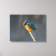 Ein Königsfischer saß gewartet, schön auf einer gestreckten Leinwand dargestellt.