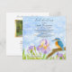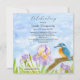 This Celebration of Life invitation features a vibrant kingfisher resting among softly flowing purple and white irises, painted in a loose watercolor style. The peaceful nature scene symbolizes calm, hope, and quiet strength, offering a gentle and meaningful tribute to a life beautifully lived.