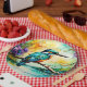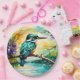 Ein Eisvogel über Wasser zwischen schönen violetten Blumen AI Generated Art von minx267