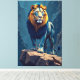 Ein Löwe steht stolz auf einem felsigen Felsen und symbolisiert Stärke und Dominanz inmitten der Pracht der Berge.