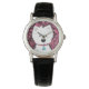 Uhr, Klassische Damenuhr mit schwarzen Lederarmband