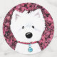 Westie Terrier Hundekunst mit abstrakt rosa Blumen auf schwarzer Malerei von Kim Niles, zeitgenössischer PUP-Künstler. © Kim Niles, KiniArt™ - Alle Rechte vorbehalten.
