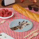 Giraffe Papier Party Teller mit niedlichen Ölpasten skizziert Giraffe auf blauem Hintergrund mit fröhlichen sonnigen Gestaltungselementen - von katz_d_zynes Auch erhältlich