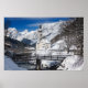 Kirche im Schnee mit den Alpen Poster