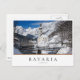 Foto Postkarte der berühmten St. Sebastian-Kirche im Schnee mit hohen Alpenbergen mit Brücke und einem kleinen Bach in Ramsau b. Berchtesgaden, in der Nähe Österreichs im Winter mit weißem Rand und einem Kasten mit dem Text "Bayern, Deutschland". Es hat Linien in schwarz, rot und gelb, die Farben der deutschen Flagge.
