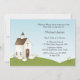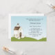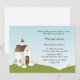 Religiöse Einladung für Mädchen oder Junge mit weißer Kirche auf dem Hügel mit gelben Blumen und kleinen Lämmern. Geeignet für Taufen, Taufen oder Bestätigungen. Graphics©Country Life Grafik