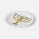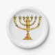 Eine Kirche menorah in Gold mit vielen Kerzen. Dieses Design wirkt auf diesen Paper-Tellern sehr effektiv
