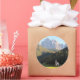 Kirche mit Dolomiten-Hintergrund Runder Aufkleber