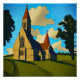 Eine Kirche befindet sich unter den Bäumen unter einem blauen Sommerhimmel